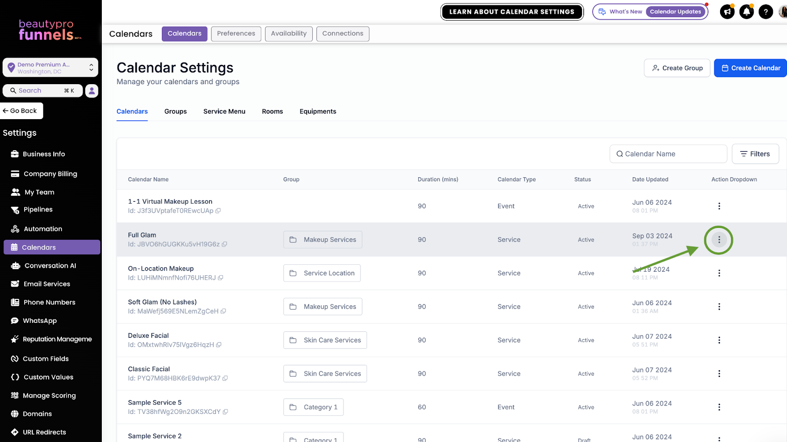 2. Click the 3 dots next to calendar you're working with